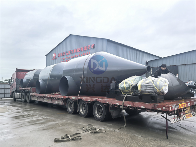 第三车:东营滚筒式烘干机的配套设备防尘罩准备开始装车了:回转式烘干机的支撑装置,在高温采用活套在内筒上的轮带与托轮支撑,低温端则在中心轴上用一滚动轴承支撑,并采用中心传动,使总体结构紧凑、合理。为便与磨损件的检修和更换,在中间一般设计成轴向剖分式,用螺栓固定连接。河南郑州兴达机械生产的这款烘