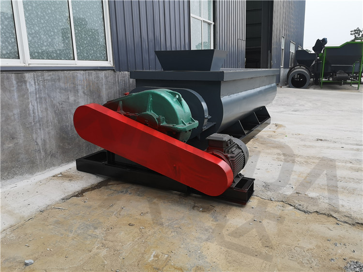 - 产品概述: 工作原理: 养殖粪便有机肥搅拌机是整套有机肥生产线中的一台有机肥设备,在有机肥生产线中用于发酵物料的搅拌利用两根呈对称状的螺旋轴的同步旋转,在输送干灰等粉状物料的同时加水搅拌,均匀加湿干灰粉状物料,达到使加湿物料不冒干灰又不会渗出水滴的目的,从而便于加湿灰装车运输或转入其它输送设