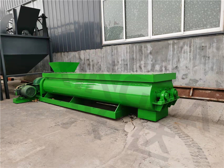 - 产品概述: 工作原理: 酒糟有机肥搅拌机是整套有机肥生产线中的一台有机肥设备,在有机肥生产线中用于发酵物料的搅拌利用两根呈对称状的螺旋轴的同步旋转,在输送干灰等粉状物料的同时加水搅拌,均匀加湿干灰粉状物料,达到使加湿物料不冒干灰又不会渗出水滴的目的,从而便于加湿灰装车运输或转入其它输送设