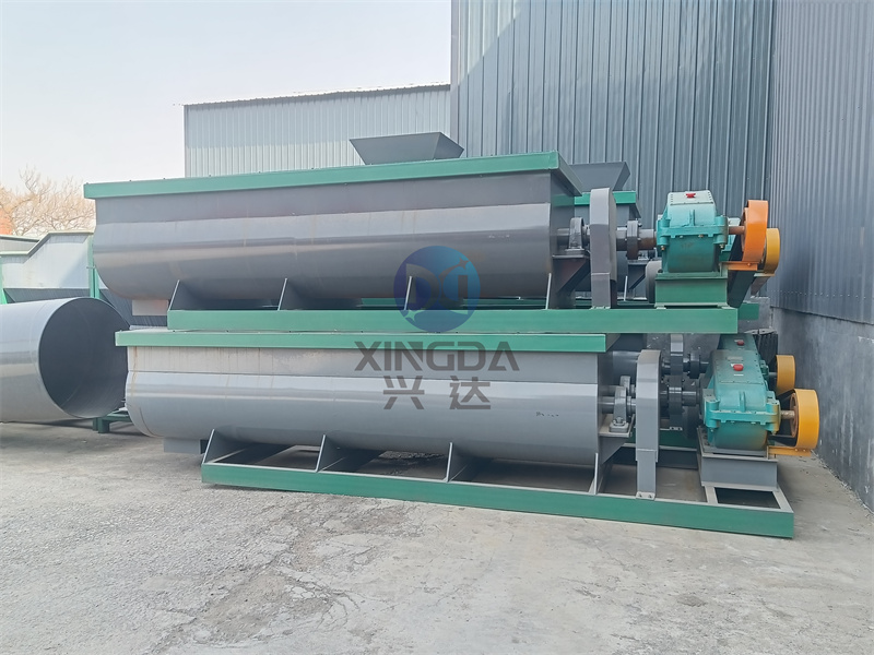 有机肥双轴搅拌机利用两根呈对称状的螺旋轴的同步旋转,在输送干灰等粉状物料的同时加水搅拌,均匀加湿干灰粉状物料,达到使加湿物料不冒干灰又不会渗出水滴的目的。
