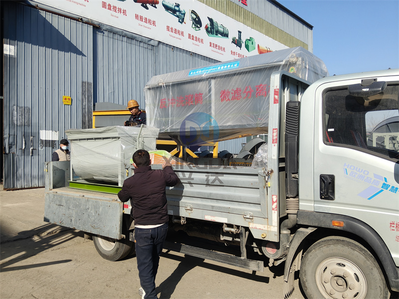 有机肥设备出货现场:固液分离粪便脱水机整装待发,准备出发:固液分离粪便脱水机的工作原理主要基于螺旋挤压技术或压滤技术。在工作过程中,畜禽粪便首先被送入设备的进料口,经过螺旋轴的旋转挤压或滤板的压力作用,粪便中的水分被挤出,形成固态的粪渣和液态的污水。其中,固态粪渣含水量较低(一般可降至以下),