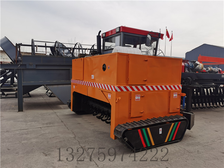 4、条垛履带翻堆机无需建槽,将肥料堆置成长形条垛于地面即可。地面堆置发酵是目前较 和 节省土建、人力资源的一种制肥模式,由翻堆机定时对物料实施搅拌、破碎,在好氧条件下进行有机物的分解。